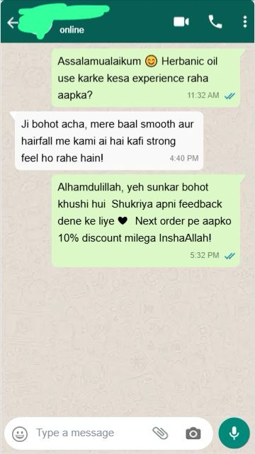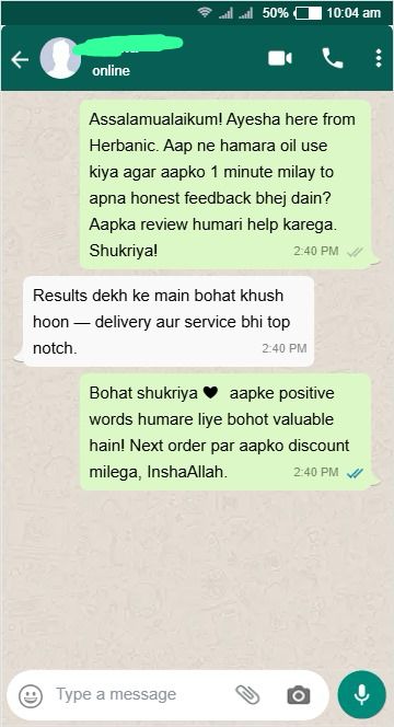 Mujhe pehle bohot hair fall tha, lekin Herbanic oil use karne k baad mere baal strong aur healthy ho gaye hain.